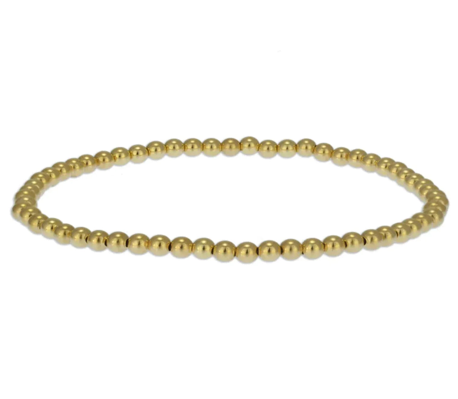 Bracelets: 14K gold filled beads in high quality elastic cord with semi precious stones.